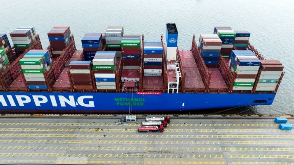 9月29日,槽车将绿色甲醇平稳注入靠泊在梅山港区的“中远海运天秤座”轮,意味着浙江省首单船用绿色甲醇加注业务落地宁波舟山港。