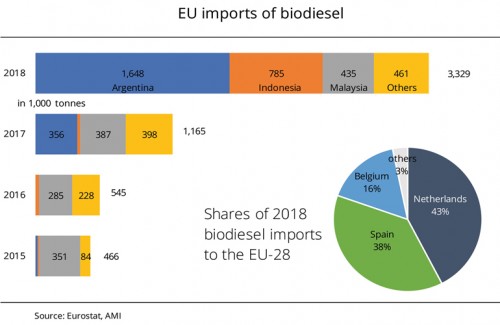 在欧盟暂停对来自阿根廷和印度尼西亚的生物柴油征收反倾销关税后,两国对欧盟的出口大幅增加。根据Agrarmarkt information - gesellschaft (AMI)的新数据,仅2018年,两国的生物柴油进口量就翻了一番。尽管来自阿根廷和印尼的生物柴油进口在前几年只是处于次要角色 ...
