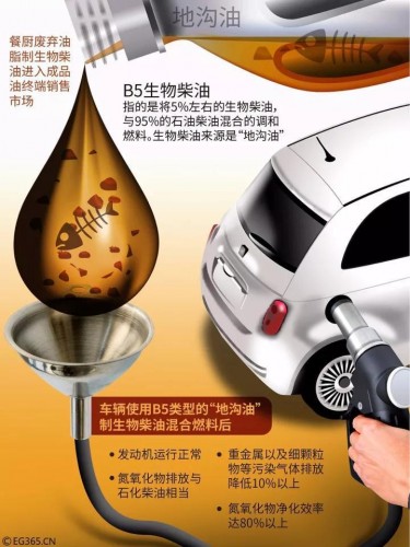 近日,国家发展改革委宣布,从11月1日起,在全国范围内停止销售硫含量大于10ppm的普通柴油,而就在这个时候,一种新型的生物柴油正式在上海向社会投放。上海两座中石化加油站近日正式开始供应由地沟油制成的B5生物柴油,11月3日的油价是每升5.85元,比普通的柴油便宜了3毛钱 ...